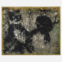 abstrahierte, naive Darstellung einer Katze und eines auf einem Ast sitzenden Vogels, Mischtechnik/Monotypie, um 1960, rechts unten signiert "Schuppner", unter Passepartout und hinter Glas gerahmt, Passepartoutausschnitt ca. 50,5 x 60 cm. Künstlerinfo: dt. Maler und Kunstfälscher (1896 Hamm an der Sieg bis 1966 Bach an der Sieg), als Autodidakt Beschäftigung mit der Malerei, 1925 Ausstellung in der Galerie Nicolai in Berlin, 1933 Emigration nach Paris, von den Nationalsozialisten mit Malverbot belegt, 1934 Ausstellung in Paris, lebte nach dem Krieg in Köln und hier auch als Kunsthändler und Fälscher tätig (siehe Spiegel Heft 45/1949), nach dem Krieg Beschäftigung mit der abstrakten Malerei, Quelle: Thieme-Becker, Vollmer, Spiegel und Stern.