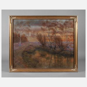 von Bäumen umsäumter Tümpel, in einer vom Licht des zur Neige gehenden Tages getauchter Heidelandschaft, Pastell, links unten signiert und datiert "Ch. B.-Vincennes D´df (19)11", hinter Glas gerahmt, Falzmaße ca. 67 x 82 cm. Künstlerinfo: schweizerischer Maler und Zeichner (1878 Normandie bis 1932 Schloss Zihl/Kanton Bern), Quelle: Vollmer.