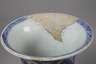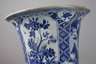 wohl Kangxi-Periode, 18. Jh., ungemarkt, Porzellan in kobaltblauer Unterglasurbemalung, zylindrischer Korpus mit leicht ausschwingendem Stand und Mündungsbereich, auf drei übereinanderliegenden Ebenen verziert mit Landschafts- und Vegetabilmotiven, gerahmt von Ornamentik, die Mündung unfachmännisch alt repariert, sonst normale Altersspuren, H 51 cm.