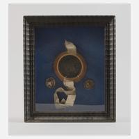 17.–18. Jh., Siegel des Philipp Adolph von Ehrenberg in Siegelkapsel, D ca. 75 mm, dazu zwei versilberte Kupfermedaillen, D ca. 25 mm, hinter Glas im Rahmen, altersgemäßer Zustand, Maße Rahmen 21,5 x 25 cm.