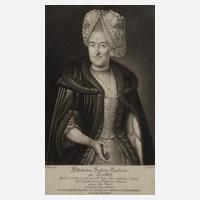 Bildnis im Alter von 52 Jahren mit elegantem Kleid, Pelzmantel und Perlenschmuck, im unteren Bereich Text, Mezzotintoradierung, unter der Darstellung in der Platte rechts bezeichnet und datiert "J. S. Negges Sc. 1784" und links bezeichnet und datiert "F. J. Degle pinx. 1779", etwas altersspurig, unter Passepartout und hinter Glas gerahmt, Darstellungsmaße ohne Schrift ca. 29,5 x 21,5 cm. Künstlerinfo: dt. Kupferstecher, Mezzotintokünstler u. Verleger (um 1726 Augsburg bis 1792 ebenda), wohl Schüler von Tobias Laub, Mitglied der kaiserlich-französischen Akademie in Augsburg, tätig in Augsburg, Quelle: Thieme-Becker und Internet.