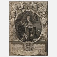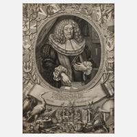 Portrait des Nürnberger Patriziers im Oval, umgeben von zahlreichen Putti und Wappen, im unteren Bereich Text, Kupferstich, um 1700, unter der Darstellung rechts bezeichnet "J. Sandrart Sculpsit" (durch Rahmung verdeckt), leichte Faltlinie, hinter Glas gerahmt, Sichtmaße ca. 39 x 29 cm. Künstlerinfo: dt. Kupferstecher, Kunsthändler und Verleger (1630 Frankfurt am Main bis 1708 Nürnberg), 1635 Übersiedlung nach Hamburg und später nach Haag, 1640 Schüler seines Onkels, des Malers und Kupferstechers Joachim von Sandrart in Amsterdam, anschließend vier Jahre Kupferstecherlehre bei Cornelis I. Danckerts in Amsterdam, 1644–48 Kupferstecherausbildung bei Willem Hondius in Danzig, danach 1 ½-jährige Reise über Thorn, Breslau und Wien nach Regensburg, ab 1656 in Nürnberg ansässig, 1662 Gründung der „Maler-Akademie“ (heute Akademie der Bildenden Künste Nürnberg), zu deren erstem Direktor er zusammen mit Georg Christoph Eimmart dem Jüngeren ernannt wird, Quelle: Thieme-Becker und Wikipedia.