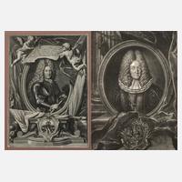 Bildnis Paul Tucher von Simmelsdorf (1656 bis 1709) und Bildnis Georg Burghard Haller von Hallerstein (1693 bis 1757), Radierung und Mezzotintoradierung, 18. Jh., teils leichte Knickspuren, hinter Glas gerahmt, Darstellungsmaße max. ca. 45 x 31,5 cm. Künstlerinfo: auch Bernard Vogel, dt. Maler, Zeichner, Kupferstecher und Schabkünstler (1683 Nürnberg bis 1737 Augsburg), Schüler von Christoph Weigel dem Älteren in Nürnberg und Elias Christoph Heiss in Augsburg, fortan Angestellter von Heiss und Heirat mit dessen Tochter, tätig als Stecher von Portraits und Thesenblättern in Augsburg, später Verkauf des Augsburger Verlags und Rückkehr nach Nürnberg, mit kurzen Aufenthalten in Augsburg, Quelle: Thieme-Becker und Internet.