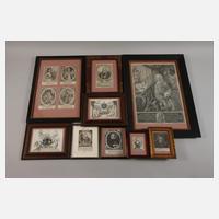 zwölf Graphiken in neun Rahmen, enthält unter anderem Arbeiten von Johann Wilhelm Windter, Johann Jacob Schollenberger, Johann Friedrich Leonhard, Peter Troschel und Martin Tyroff, Kupferstiche und Radierungen, unterschiedliche Erhaltungen, Darstellungsmaße max. 50 x 33 cm.