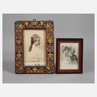 1890er Jahre, Fotograf Bernhard Dittmar München, Portraitdarstellung Louise Victoire d’Orléans (1869–1952), Tochter von Ferdinand d’Orléans, Herzog von Alençon und seiner Ehefrau Sophie Charlotte in Bayern, Ehefrau von Prinz Alfons von Bayern, mit Unterschrift Louise und Datierung 14. März 1892, sowie Doppelportrait Louises mit ihrem Gatten, Maße 22 x 13,5 und 17 x 12,5 cm.
