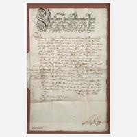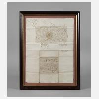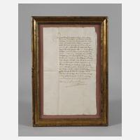 datiert 26. August 1768, handgeschriebener Brief auf Bütten, "Von Gottes Gnaden Maximilian Joseph in ober und niedern Bayer auch der obern Pfaltz Hörtzog, Pfaltz Graf bey Rhein des Großheil. Röm. Reichs Erz-Truchress (?) und Churfürst Landgraf zu Lichtenberg...", hinter Glas im Rahmen, altersgemäßer Zustand, Maße Brief 21 x 32 cm.