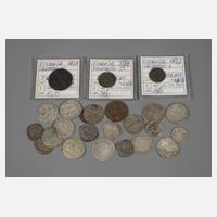 17. bis 19. Jh., ca. zwanzig Silbermünzen, darunter 3 Kreuzer Tirol, Ferdinand Karl 1641, ss+; 3 Kreuzer Graz, Ferdinand III. 1657, ss+; 3 Kreuzer Neuburg am Inn, Leopold I. 1665, ss; 3 Kreuzer Schlesien, Leopold I. 1666, ss; 3 Kreuzer Tirol, Leopols I. 1677, s; 3 Kreuzer Böhmen, Leopold I. 1670, s; 3 Kreuzer Ungarn, Leopold I. 1661, ss und 1662, s; 2 Kreuzer Augsburg, Ferdinand II. 1623, s; 3 Kreuzer Lichtenstein, Karl 1669, s; 6 Kreuzer Österreich 1849, ss; und weitere, dazu fünf Kupfermünzen wie 5 Quattrini Italien 1830, 1 Kreuzer Bayern 1871, interessantes Konvolut zur Sammlungsergänzung.