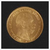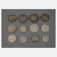 darunter Krönungstaler Wilhelm I. und Augusta von Preußen, 1861 fast vz; Siegestaler 1871 ss mit Randdelle; 5 Reichsmark Preußen Wilhelm I. 1875 s; Wilhelm II. 1907 ss; Wilhelm II. in Uniform 1914 vz; 3 Reichsmark Bayern, Luitpold 1911 vz–stgl; 2 Reichsmark Preußen, Friedrich und Wilhelm II. 1901 vz; Wilhelm II. 1907 ss; sowie 2 Reichsmark Baden, goldene Hochzeit Friedrich und Luise 1906 vz.
