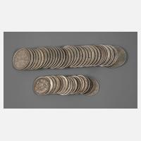 darunter dreiunddreißigmal 1 Reichsmark 1874–1915, sowie achtzehnmal 1/2 Mark 1906 bis 1918, verschiedene Erhaltungen von s–vz.