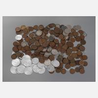 ca. 250 Kleinmünzen zu 1, 2, 5, 10, 25 und 50 Pfennig, sowie 200 und 500 Mark, Kaiserreich, Inflation und 3. Reich in Umlauferhaltung.