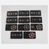 elf Stück, darunter San Marino mit verschiedenen Jahreszahlen; Slowakei mit Münzen aus 2009 und 2010; 2 Euro Edelmetallset Luxemburg 2013, 2014; Niedersachsen 2014; Nordrhein-Westfalen 2011; Baden-Württemberg 2013; BRD 30 Jahre Europaflagge 2015; Lettland 2014 sowie die Specimen-Sets Andorra und Vatikan, alle in limitierten Auflagen, PP und in Sammelblistern.
