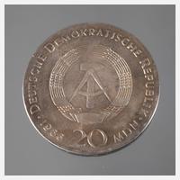 DDR 1966, 20 Mark Leibniz in Silber, mit schöner Patina, minimaler Randschlag unten, fast vz.