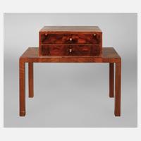 an der Unterseite gemarkt Alfred Bungard Frankfurt, 1930er Jahre, zweischübiger Korpus im indischen Palisander furniert, Beschläge aus Messingguss, Oberfläche etwas restaurierungsbedürftig, Maße 65 x 70 x 37 cm.