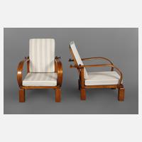 wohl Tschechien, 1930er Jahre, Eiche massiv, mittelbraun gebeizt, unter Dampf gebogene Armlehnen, in der Neigung verstellbares Rückenteil, Polster und Bezüge erneuert, normale Alters- und Gebrauchsspuren, Maße 90 x 68 x 85 cm.