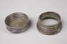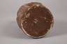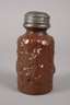 18. Jh., graues Steinzeug handabgedreht, dunkelbraun glasiert, reliefierte Darstellungen von Edelleuten mit Krug, gerahmt von Weinlaub, Zinnmontierung, der Deckel japonisierend verziert, Montierung locker, H 16,5 cm.