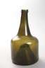 18. Jh., dunkelgrünes und bräunliches Glas mit tief eingestochenem Boden, bauchige Formen mit sich verjüngendem Hals und Bändern an der Mündung, ohne Stopfen, Gebrauchsspuren, H ca. 20 und 23 cm.
