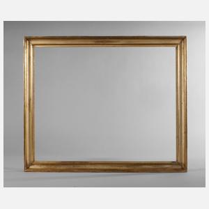 Mitte 19. Jh., ca. 6 cm breiter, aufsteigend profilierter Rahmen, versilberte und schellackpatinierte Holzleiste, Gehrungen geschnitten, partiell poliert, restauriert, Altersspuren, Falzmaße ca. 80 x 65 cm.
