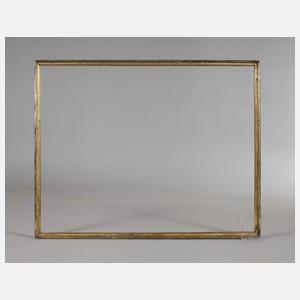 um 1860, ca. 2 cm breite, steigend profilierte, versilberte und mit Schellack überzogene Holzleiste, Gehrungen geschnitten, geringe Verluste, Falzmaße ca. 50,5 x 64 cm.