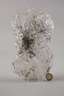unbestimmten Alters, klarer Quarz mit feinen eingelagerten nadelartigen Kristallen des Minerals Rutil, flache amorphe Form, L 24 cm.