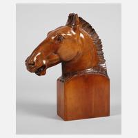 datiert (1)932 und partiell undeutlich signiert "Johs-Göldel", Gießerstempel "Guss T. Noack Leipzig", Bronze hell patiniert, rückseitig handschriftlich bezeichnetes Klebeetikett "Leonore Kühnle Leipzig Buchhändlerin 1932", Kopfdarstellung einer Dame mit schräger Kappe und unter dem Rand hervorquellendem kurzen Lockenhaar, auf Sockel aus Granatserpentin, H Büste ca. 31 cm H gesamt ca. 38,5 cm. Künstlerinfo: deutscher Bildhauer und Maler (1891 Leipzig bis nach 1946) Lehre als Steinmetz, dann Studium an der Akademie für graphische Künste und Buchgewerbe in Leipzig, zeitweise als Lehrer an der Kunstgewerbeschule Leipzig tätig, freischaffend tätig, ansässig in Borsdorf und Leipzig, hauptsächlich im Bereich der Bauplastik tätig, bedeutende Werke sind beispielsweise die sieben Figuren am Petershof in Leipzig, ein Denkmal 1. Weltkrieg für die Gemeinde Borsdorf sowie 1926 mit Alfred Dietel ausgeführte Arbeiten für das Grassimuseum (Wandgestaltung sowie Figuren für den Hauptbau). Quelle: Thieme-Becker/Vollmer, Allgemeines Lexikon der Bildenden Künstler, Verlag Seemann Henschel GmbH & Co. KG, 125 Jahre Museum für Kunsthandwerk Leipzig Grassimuseum, Museumschronik von den Anfängen bis zum Jahr 1929, Thormann, O. et al., Passage-Verlag 2003, S. 162; Internet.