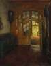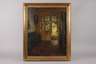 Blick aus einem bürgerlich eingerichteten Zimmer, durch eine halb geöffnete Flügeltür, in einen Treppenraum mit ebenfalls geöffneter Tür nach draußen und hier ist eine sonnenbeschienene Landschaft zu erkennen, minimal pastose Malerei in warmer, teils gedeckter Farbigkeit mit gekonnter Lichtbehandlung, Öl auf Leinwand, links unten signiert und datiert "Wilh. Claudius 1935.", rückseitig auf Leinwand Nummer "K. 1936/65", auf Keilrahmen bezeichnet "Wilh. Claudius Ger. Hauptmannstraße 20, Norddeutsches Innenbild", leicht farbschwundrissig, geringe Retuschen, gerahmt, Falzmaße ca. 80,5 x 65 cm. Künstlerinfo: eigentlich Wilhelm Ludwig Heinrich Claudius, dt. Maler, Zeichner und Illustrator (1854 Hamburg-Altona bis 1942 Dresden), studierte 1871-72 an der Akademie in Dresden und 1875-79 an der Akademie in Berlin bei Karl Gussow, ab 1879 wieder in Dresden ansässig, 1885 Studienaufenthalt bei Carl Bantzer in Niederwalgern in der Schwalm, 1903 zum Professor ernannt, 1909 goldene Medaille auf der Großen Kunstausstellung in München, Mitglied der Künstlerkolonie Goppeln und der Willingshauser Malerkolonie, tätig in Hamburg, Thalheim und Dresden-Strehlen, Quelle: Thieme-Becker, Vollmer, Dressler und Internet.