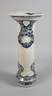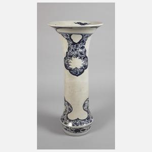 wohl 16. Jh., ungemarkt, Feinsteinzeug in elfenbeinfarbener Glasur, bemalt, schlanker zylindrischer Korpus mit ausschwingender trichterförmigen Mündung, alt repariert, H 59,5 cm.