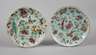 19. Jh., am Boden gepinselte Sechs-Zeichen-Marke, Porzellan in hellgrüner Unterglasur und polychromer Aufglasurbemalung, komplett floral durchmustert mit zusätzlichen Vogel- und Schmetterlingsdarstellungen, kleinste Chips, berieben, D je ca. 25 cm.
