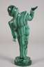1. Hälfte 20. Jh., aus fein geädertem Malachit gestaltete männliche Figur als stilisierter Butler, auf getreppter Plinthe, Substanzverluste, H 23 cm.