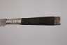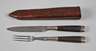 Anfang 19. Jh., Griffstücke aus Ebenholz mit floral gravierten Montierungen, die Klinge gemarkt R.G., Obstbesteck im geprägten Lederetui, Altersspuren, L max. 20 cm.