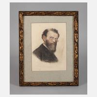 Selbstportrait des ca. 70-jährigen Künstlers mit Brille und zum Betrachter gewandtem Blick, Graphit und Farbstifte auf Papier, um 1910, auf Rahmenrückseite, Internetausdruck mit der Darstellung eines Selbstportraits von Carl Robiczek, Papier gleichmäßig gebräunt, unter Passepartout und hinter Glas gerahmt, Passepartoutausschnitt ca. 22 x 16,5 cm. Künstlerinfo: auch Carl Robiczek, Genre- und Landschaftsmaler (1839 Warschau bei Austerlitz/ Böhmen bis 1918 Fürstenfeldbruck), Studium an der Akademie in Wien, ab 1860 Studium an der Akademie in München, nachfolgend in München tätig, 1880 Umzug nach Fürstenfeldbruck, der Künstler zählt zu den bekanntesten Vertretern der "Brucker Maler", Quellen: Thieme-Becker, Matrikeln der Münchner Akademie und Internet.