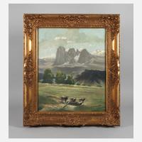 Kühe auf sommerlicher Alm vor hoch aufragender Bergkulisse im hellen Sonnenlicht, stimmungsvolle Landschaftsmalerei, Mischtechnik (Gouache und Pastellkreide) auf Karton, um 1940, links unten signiert "A. Stagura", rückseitig nochmals signiert "A. Stagura", Malgrund wellig, fleckig, hinter Glas im prächtigen Goldstuckrahmen gerahmt, Falzmaße ca. 60 x 50 cm. Künstlerinfo: dt. Maler und Pastellzeichner (1866 Dresden bis 1947 Gstadt am Chiemsee), studierte ab 1882 an der Akademie in Dresden bei Leon Pohle, Meisterschüler von Friedrich Preller dem Jüngeren, 1904 Umzug nach Dießen am Ammersee, 1904 Ausstellung im Kunstverein Plauen, ab 1906 in den Ausstellungen des Münchner Glaspalastes vertreten, Verleihung des Professorentitels, 1914 Auszeichnung mit der Großen Goldenen Österreichischen Staatsmedaille, 1918 Umzug nach München, 1920–25 Vorstandsmitglied der Münchner Künstlergenossenschaft, ab 1920 Mitglied der Künstlervereinigung "Frauenwörther", 1926 erste Reise an den Chiemsee und fortan verbringt er die Sommermonate in Gstadt, 1944 bei Bombardierung von München Zerstörung seines Ateliers und eines Großteil seiner Werke, lebt nun dauerhaft in Gstadt am Chiemsee, Mitglied im Reichsverband der bildenden Künstler und der Münchner Künstlergenossenschaft, Quelle: Thieme-Becker, Vollmer, Dressler, Schülerlisten der Dresdner Akademie und Internet.