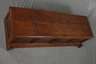 18. Jh., Eiche massiv, reich beschnitzte Front, innen originales Zangenschloss, alt restauriert, in der Höhe gekürzt, Bänder erneuert, mit Schlüssel, Maße 50 x 180 x 60 cm.