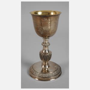 datiert Dezember 1824, Schriftzug "Der Gemeinde Nonnenweyer", Silber mehrfach gestempelt 13 Lot mit Stern, Herstellerpunze IT.S im Rechteck, Verschraubung Metall, Fuß verziert mit Palmetten und Perlbändern, glockenförmige Kuppa innen vergoldet, H 21 cm, G total ca. 685 g.