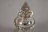 um 1920, ungemarkt, Silber geprüft, fein getrieben und ziseliert, verziert mit Bändern aus Lorbeer und Eichenlaub, Stopfen mit Palmetten und Beere, guter altersgemäßer Zustand, H 16 cm, G ca. 170 g.