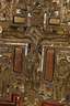 Russland, 19. Jh., kirchenslawisch bezeichnet, Tempera auf schlichter Laubholzplatte, goldbronziert, eingelegtes Bronzekruzifix, reliefiert und farbig emailliert, dieses mit zentralem Korpus Christi, gerahmt von Szenen aus dem Leben Jesu, flankiert von zwei Heiligenfiguren, der Heiligen Olga linker sowie dem Heiligen Wasilij rechter Hand, an den Kanten mit kleineren Substanzverlusten, Maße 35 x 31 cm.