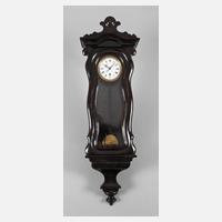 um 1870, auf dem Ziffernblatt rückseitig gemarkt K&D, kleines trapezförmiges Uhrwerk mit einem Federhaus, feines Emailleziffernblatt mit römischen Zahlen, funktionstüchtig, mit Schlüssel, D Werk 8,5 cm, H Gehäuse 60 cm.