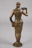 um 1924, verso signiert Rost., Bronze hell patiniert, minimal abstrahierte und etwas bewegte Darstellung eines Damen-Halbaktes als Allegorie auf den Frühling, ein großes Blütenbukett auf die Schulter gestützt tragend und auch in den Rock noch zahlreiche angedeutete Blüten gewickelt, auf kleiner runder Plinthe, altersgemäß gute Erhaltung, H 19,5 cm. Künstlerinfo: eigentlich Otto Paul Rost (1887 Keuern bis 1970 Döbeln), deutscher Bildhauer und Hochschullehrer, 1909–1914 Studium an der Kunstgewerbeschule Dresden, danach Teilnahme am 1. Weltkrieg, dann 1920–1923 Studium an der Dresdner Kunstakademie unter Georg Wrba, danach freischaffend in Dresden tätig, bis zu dessen Auflösung 1936 Mitglied im Deutschen Künstlerbund, in der NS-Zeit Mitglied der Reichskammer der bildenden Künste, auf verschiedenen Ausstellungen wie der großen Münchner Kunstausstellung (von 1940–1944), nach Wrbas Eintritt in den Ruhestand erhielt Rost ein zunächst dreijähriges Lehramt an der Staatliche Akademie der Bildenden Künste in Dresden, 1942 folgte diesem ein gleichartiger Vertrag, 1945 lief dieser aus und wurde, da Rost Mitglied der NSDAP gewesen war, nicht mehr fortgesetzt, Rost betätigte sich in der Nachkriegszeit im Sinne der demokratischen Regierung und in der Auftragskommission in Dresden und schuf fortan zahlreiche Denkmäler sowie Büsten bedeutender Persönlichkeiten. Quelle: Wikipedia.