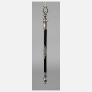 Anfang 20. Jh., mit gravierter Dedikation Der Eintracht vom Sängerkreis Moselland ... zum 25jähr. Jubelfeste, Schaft aus schwarzem Bakelit mit versilberten Endstücken in historisierendem Dekor sowie zentraler rocaillenverzierter Kartusche, im Etui, L 39 cm.
