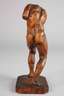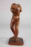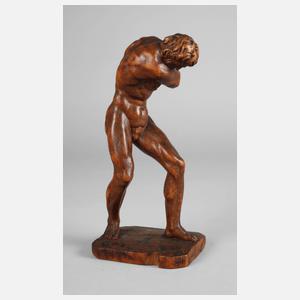 18. Jh., Zirbenholz geschnitzt, in der Art Mathias Bernhard Brauns und dessen bekannten Portalatlanten am Palais Clam-Gallas in Prag, es ist deutlich die Schule Balthasar Permosers zu erkennen, Männerakt ohne Arme, vom Gewicht der Welt gebeugt, auf kleiner Holzplinthe mit abgeschrägten Ecken, diese mit Fehlstellen und repariert, Altersspuren, H 18,5 cm.