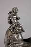 Entwurf um 1890, Ausführung A. Köhler & Cie. Wien für WMF, Bronze vergoldet und versilbertes Britanniametall, auf einer Schildkröte stehender Amor als Jüngling, in den Händen eine große Nautilusmuschel mit auf Fisch aufsitzendem Putto tragend, Muschel verziert mit Rollwerk und Maskaron, Spitzen der zwei Pfeilenden fehlen, Patina partiell fehlend, H 47,7 cm. Künstlerinfo: bed. dt. Maler, Graphiker, Bildhauer und Architekt (1863 Tettenweis bis 1928 Tetschen), studierte 1882–84 an der Münchner Kunstgewerbeschule und ab 1885 an der Münchner Akademie unter Wilhelm von Lindenschmit, beeinflusst von Diez, Böcklin und Lenbach, 1892 Mitbegründer und Präsident der Münchner Sezession, ab 1895 Professor und Nachfolger von Lindenschmits an der Münchner Akademie, gehörte neben Kaulbach und Lenbach zu den Münchner Malerfürsten, 1906 geadelt, Ehrenmitglied zahlreicher Akademien, tätig in München, 1924 zum Geheimrat und 1928 zum Dr. h.c. ernannt, Quelle: Thieme-Becker, Vollmer, Matrikel der Akademie München und Internet.