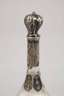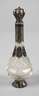 wohl Russland, 19. Jh., am originalen Stopfen ein Schwert? als Punze, farbloses Glas mit Schäl- und Kerbschliff, die Silbermontierung fein graviert und geschwärzt, scharnierter Klappdeckel, der Stopfen aus Kork, Gebrauchs- und Altersspuren, H 11 cm.