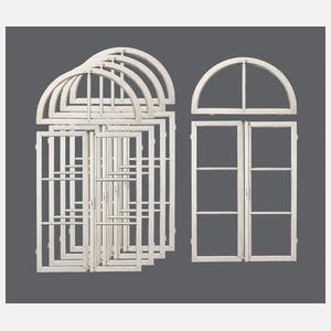 um 1840, zweiflügelig, mit kippbarem Oberlicht, aus Nadelholz weiß lackiert, Fenster mit Stangenschlössern, alle Scheiben aus gewölbtem Klarglas, eine Scheibe fehlt, jedoch acht Ersatzscheiben lose beigegeben, Maße 102 cm x 206 cm. Provenienz: Die Fenster gehören zur ursprünglichen Bausubstanz des 1842 erbauten Logierhauses “Stadt Coblenz” im Ortskern von Bad Ems, die Baugeschichte (Pläne) und die weitere Nutzung des Gebäudes sind nahtlos dokumentiert.