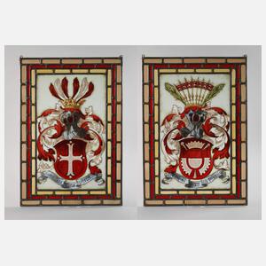 Paar Bleiglasfenster mit Wappenmotiv