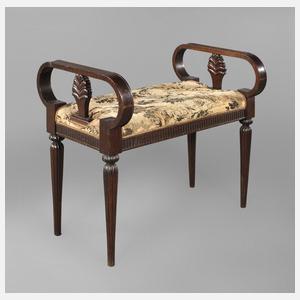 deutsch, 1920er Jahre, Eiche massiv, braun gebeizt, originaler Bezugsstoff verschlissen, die Verleimung einer Lehne etwas gelockert, sonst normale Gebrauchsspuren, Maße 72 x 86 x 54 cm.