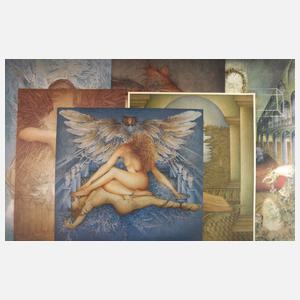 sechs Arbeiten mit verschiedenen Themen, Farboffset auf Bütten, Ende 20. Jh., jedes Blatt von Hand signiert "Wolfg. Fratzscher" und nummeriert eines von 90 Exemplaren oder "E. A.", teils leicht wellig, Blattmaße max. ca. 100 x 70 cm. Künstlerinfo: auch Fratzscher, dt. Graphiker (1944 Rendsburg bis 2009 Buchholz), 1964-68 Studium an der Fachhochschule für Gestaltung Hamburg, 1968-69 Meisterschüler an der Fachhochschule für Gestaltung Hamburg, seit 1971 als freischaffender Maler und Graphiker tätig, Quelle: Lot-tissimo und Internet.