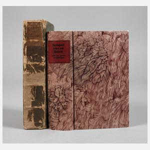 1) Neue Fabeln oder moralische Gedichte der Deutschen Jugend, zu einem erbaulichem Zeitvertreibe aufgesetzt von Daniel Stoppen aus Hirschberg in Schlesien, Mitgliede der Deutschen Gesellschaft in Leipzig, Breßlau verlegt Johann Jacob Korn 1745, Format Kl 8°, 5 Bl., 272 S., 2 Bl., Pappeinband der Zeit mit montiertem handschriftlichen Rückenschild, 2) Aesopus des Phrygiers Leben und Fabeln, nebst den Fabeln des Philelphus, neue Übersetzung mit moralischen und historischen Anmerkungen des Herrn Abts von Bellegarde, dieser neuen Übersetzung sind die Fabeln des Gabrias, des Avienus und die Mährchen des Aesopus beygefüget, Berlin und Göttingen bey den Gebrüdern Schmid 1745, Format Kl. 8i°, 5 Bl., alt hinterlegter Titelkupfer, 538 S. und 5 Bl., mit 58 von 59 Kupferstichtafeln zu den Fabeln, später neu gebunden in Pappeinband mit montiertem Rückentitel, Tafel 48 fehlt, Tafel 26 mit Fehlstelle am unteren Rand, Tafel 47 und 57 mit je einem Einriss, Alters- und Studierspuren.