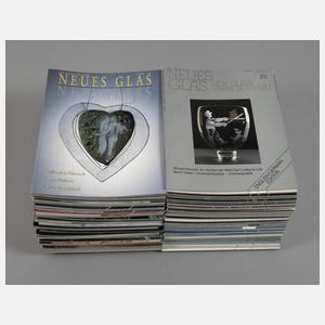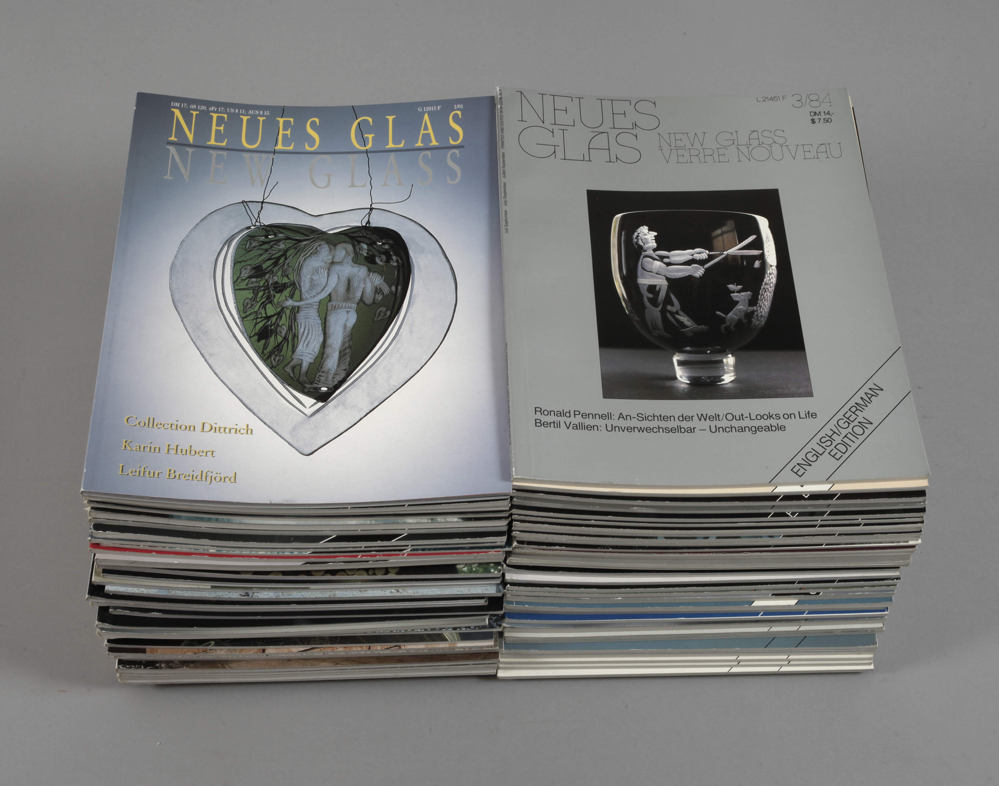 66 Stück, New Glass 1980–2001, bei German Language Publications Inc., Englewood New Jersey, reich bebilderte Magazine mit Neuheiten der Glasmacherkunst, Format Lex. 8°, farbig bedruckte Broschuren mit Gebrauchsspuren.