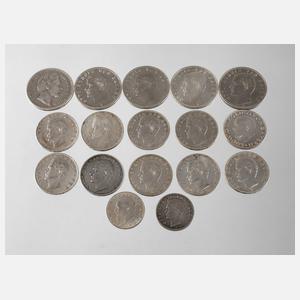 5 Mark 1876 D, Ludwig II., ss+; dreimal 5 Mark 1908 D, Otto, ss–vz; 5 Mark 1913 D, Otto, ss+; neunmal 3 Mark 1908 D bis 1913 D, Otto, ss–vz; 3 Mark 1914 D, Ludwig III., vz–Stgl.; 2 Mark 1904 D, Otto, ss+, sowie 2 Mark 1914 D, Ludwig III., vz.