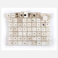 beinhaltet unter anderen, Citrine, Madeira-Citrine, Rauchquarze, Amethyste, Blautopase, Granate, Rubine, Turmaline, Smaragde, Saphire, Edelopale sowie diverse Synthesen, teils mit kleineren Beschädigungen da unter anderen Ausfassware, in Klarsichtdosen mit Schatulle.