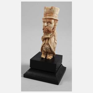 neuzeitlich, Horn beschnitzt, plastisch in Form eines missmutig dreinblickenden stehenden Kobolds mit Zylinder gestaltet, auf geschwärztem Holzsockel montiert, H 11,5 cm.